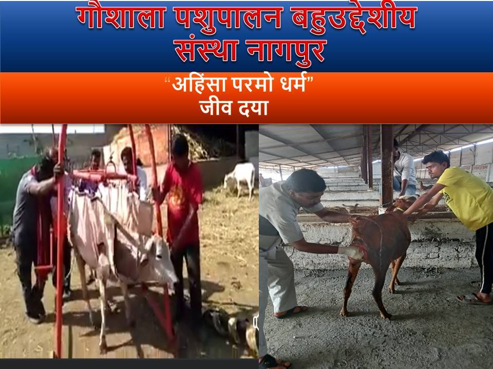 Goushala Pashuplan Bahudeshiya Sanstha Nagpur is one of the biggest cow shelters for desi cows. The cows and animals that are going to be slaughtered, who are helpless, orphaned, destitute, crippled, accident-prone, are rescued by the government police department and brought in injured state for rearing so that they can live their lives. Many cow protectors, cow-helpers and doctors have been appointed to take care of them. These cows are not useful for milk. Many cow owners leave them in our cow shelter because they do not give the milk. This service work is being done in our cow shelter since 2005 and every day many animals and cows are brought and the service work goes on continuously.eading Text Here